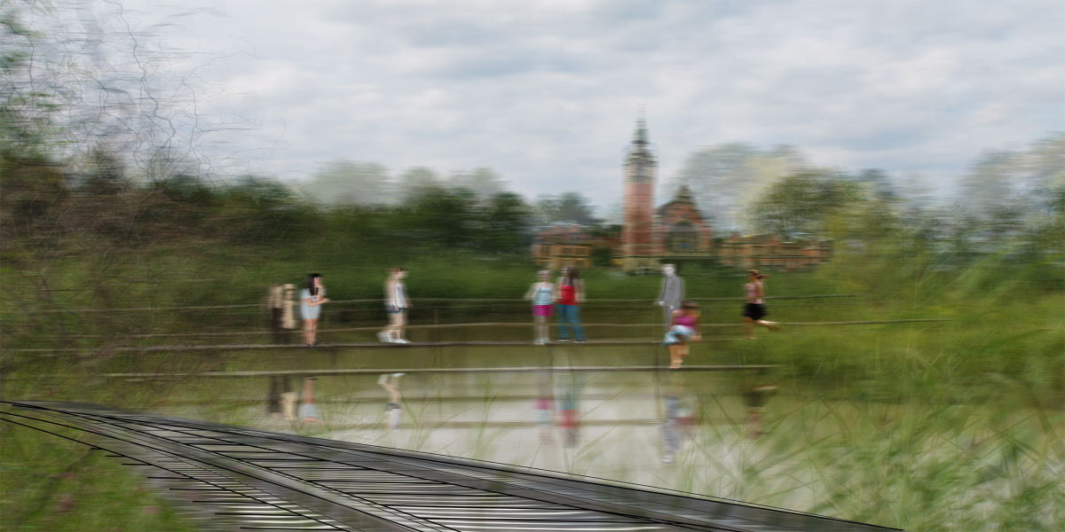 Das Material wurde mir von Personen zugetragen, die mir im Laufe von vier Wochen real und virtuell begegneten. In der Auseinandersetzung mit Überlagerungen, Transparenzen, Linien und Bewegung und in der neuen Kontextualisierung einzelner Fragmente entsteht eine eigene Bildersprache, die den Eindruck erweckt, man bewege sich durch Raum und Zeit.